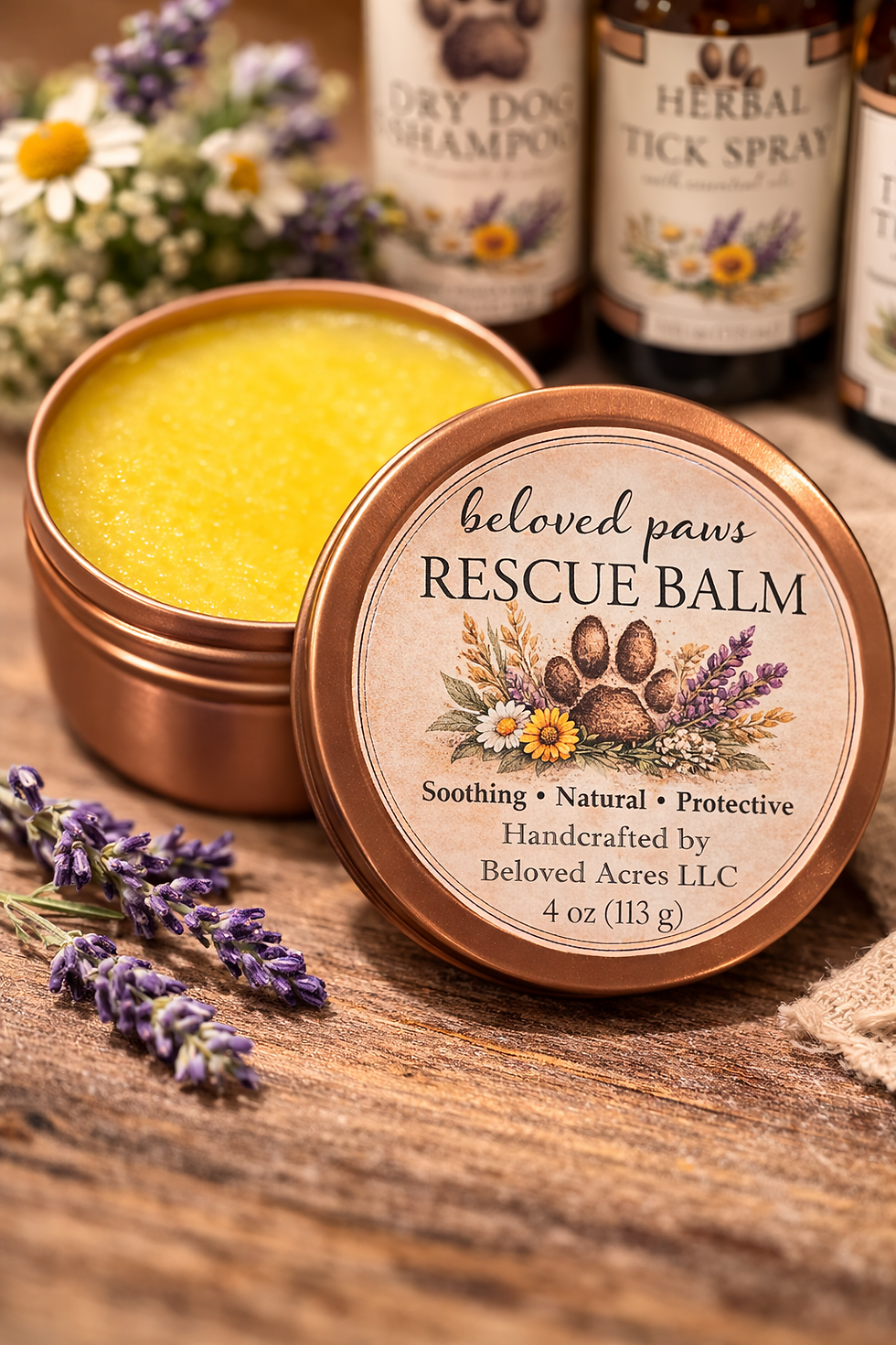 Our philosophy is rooted in simplicity, transparency, and respect for the natural balance of a dog’s body. We create our dog care products from scratch, using thoughtfully chosen, all-natural ingredients that serve a clear purpose—nothing more and nothing unnecessary. Each formula is developed with real dogs in mind, tested in real life, and made in small batches with the same care we use for our own animals. We believe dogs thrive when their skin and coat are supported, not overtreated, which is why our products are gentle, effective, and free from synthetic fragrances, harsh detergents, or fillers. These handcrafted dog care essentials are available for purchase here, offering a simple, honest approach to keeping your dog clean, comfortable, and well cared for—naturally.